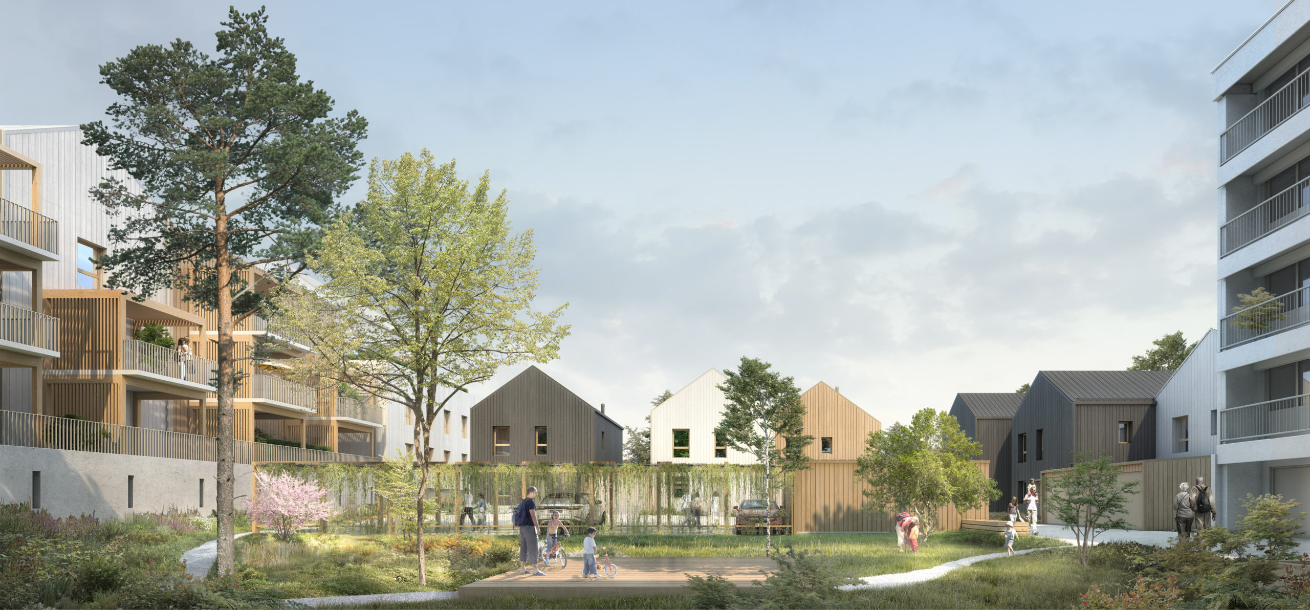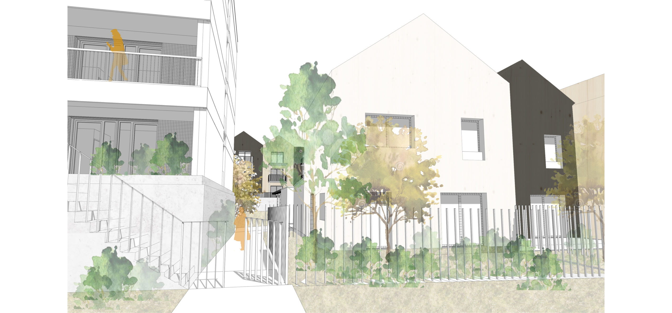 Construction d’un immeuble de 16 logements en accession aidée sur un niveau de stationnement, et de 7 maisons individuelles groupées