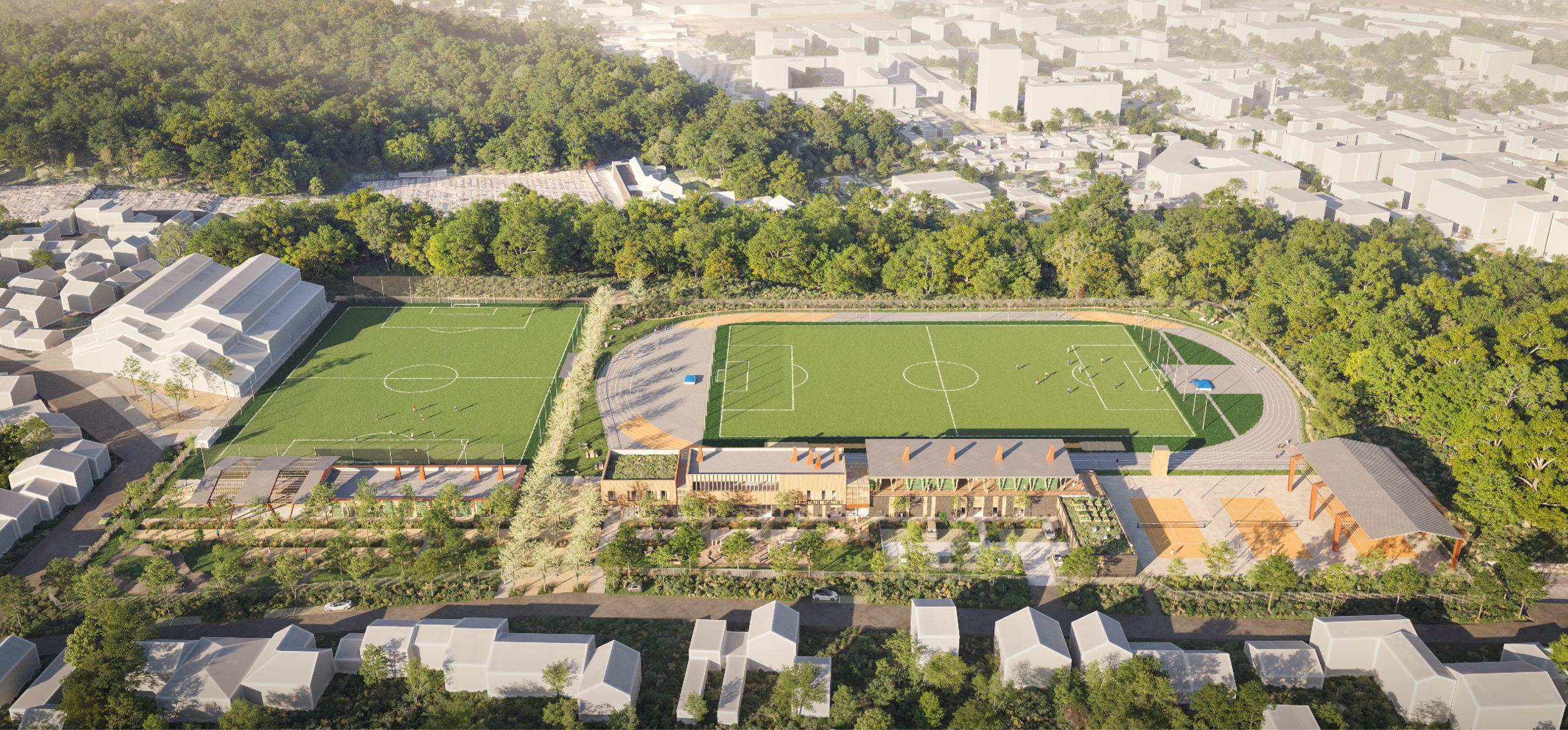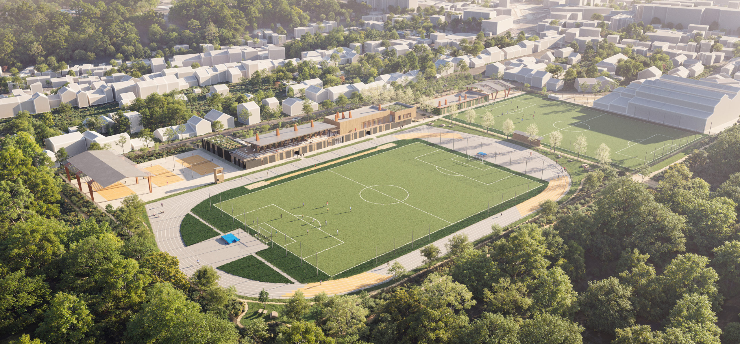 Aménagement du stade Paul Baldit: construction des bâtiments des vestiaires et tribunes, construction de 2 terrains de foot, une piste d’athlétisme, un pumptrack, un boulodrome, 3 terrains de tennis et des aménagements paysagées pour le jeu et la détente.