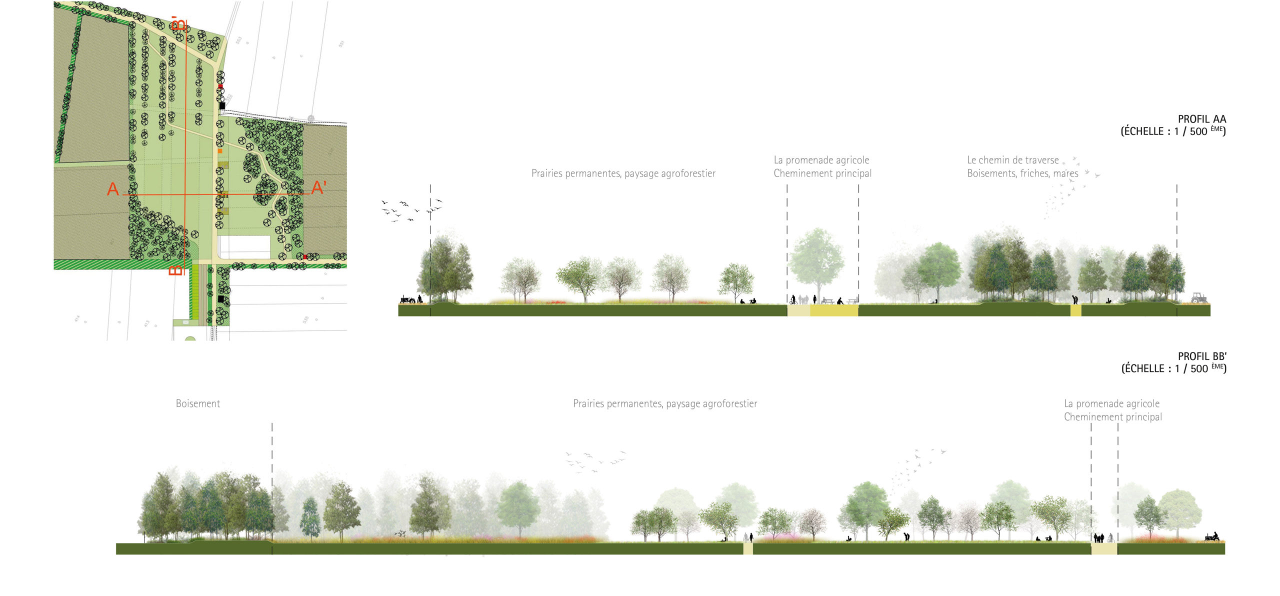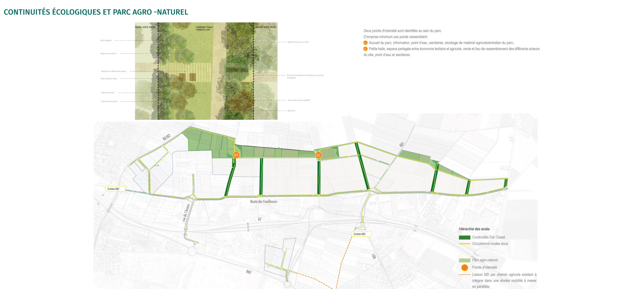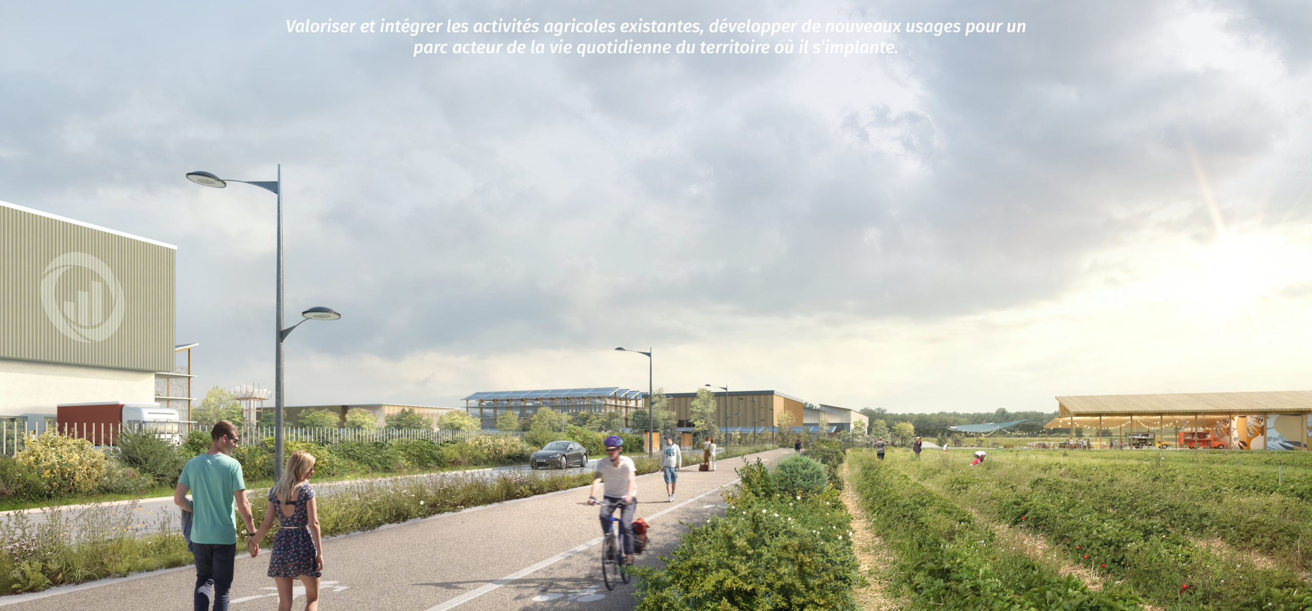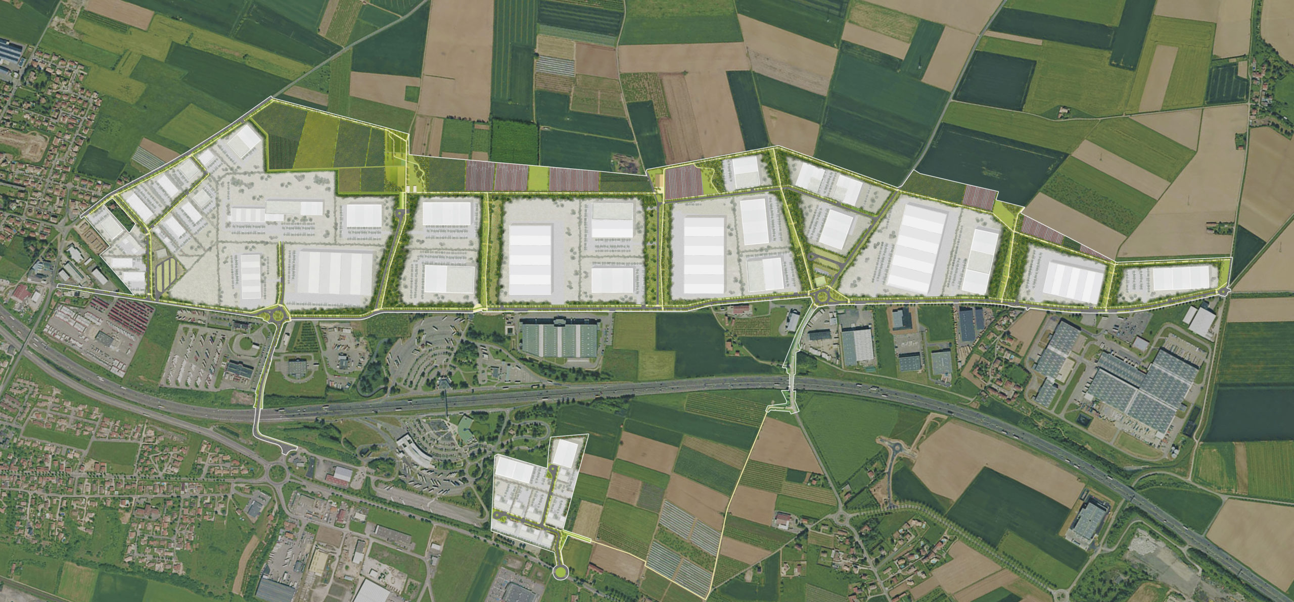 Le projet doit établir une démarche d’écologie industrielle. Des ateliers avec les acteurs locaux, les entreprises et le club Amplitude permettra d’identifier les synergies possibles à mettre en place et de co-construire un projet d’aménagement porté par tous. Toutes les étapes du processus d’élaboration du projet doivent permettre d’aboutir à un aménagement respectueux de son environnement, des résidents et des usagers. Le maintien de l’activité agricole le plus longtemps sur site, en attendant la commercialisation des lots, est pour nous essentielle. Le phasage de l’opération sera finement étudié en ce sens. La préservation d’un certain nombre de parcelles agricoles permettra de mettre en place des compensations agricoles sur site.